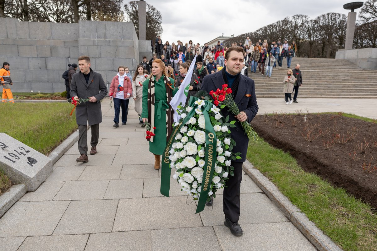 6 мая студенты, преподаватели и сотрудники Политехнического университета приняли участие в акции памяти на Пискарёвском мемориальном кладбище. Они возложили цветы к монументу Матери-Родине и братской могиле политехников.